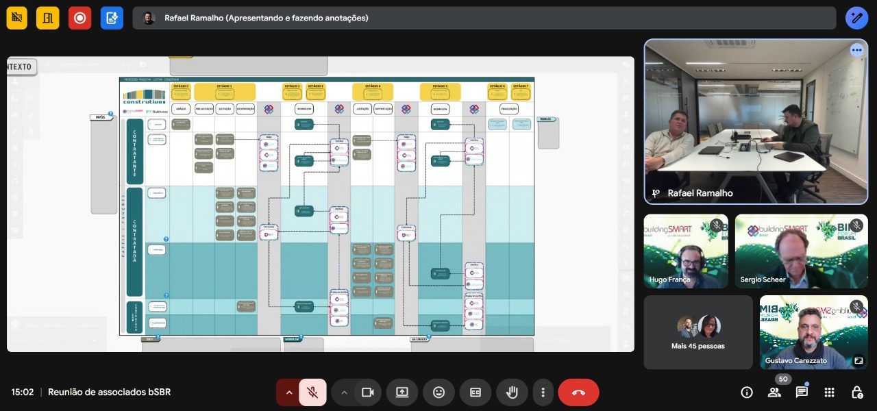No último dia 28, aconteceu a reunião mensal de associados da buildingSMART Brasil (bSBR), conduzida pelos diretores Hugo França, Sergio Scheer e Gustavo Carezzato. Na pauta, um panorama geral das atividades da associação.